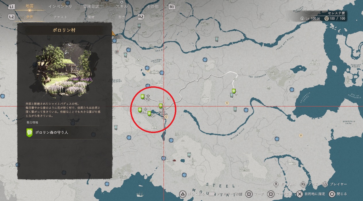掌波の葉はポロリン村の近くに採集スポットがありますから、レイシーの秘密商店を探す前に先に集めておきましょう。