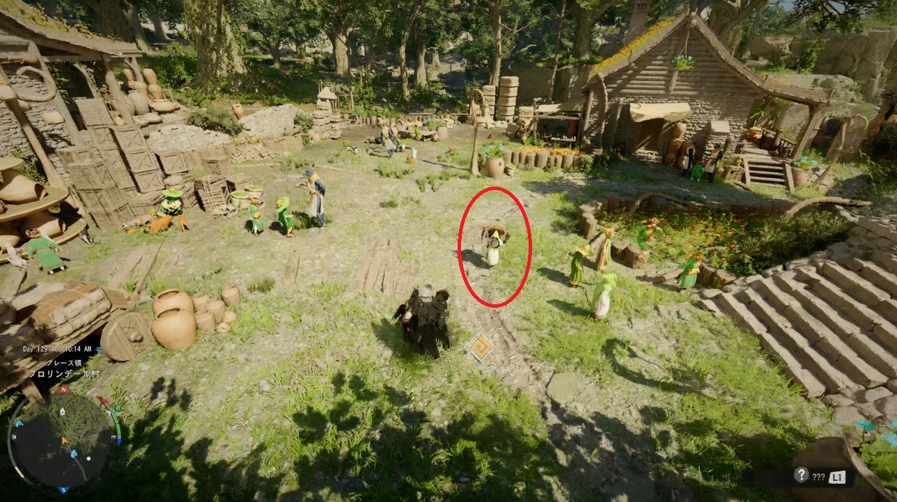 ポロリン村の近辺を徘徊していると荷物を担いだNPCが出現します。レイシーという名前のNPCでミニマップにも特にアイコンは出現しませんから目視で探し続けるしかないです。