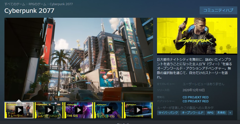 巨大都市ナイトシティを舞台に、謎めいたインプラントを追うことになった主人公Ⅴ(ヴィー)を操るオープンワールドRPG(公式サイトの原文まま)。
