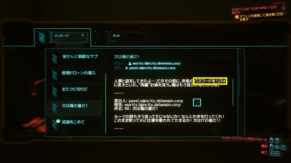 ②オフィスを捜索して扉を開く方法を探す