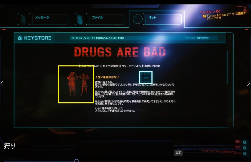 〇「Drugs Are Bad」サイトの画像をクリックする