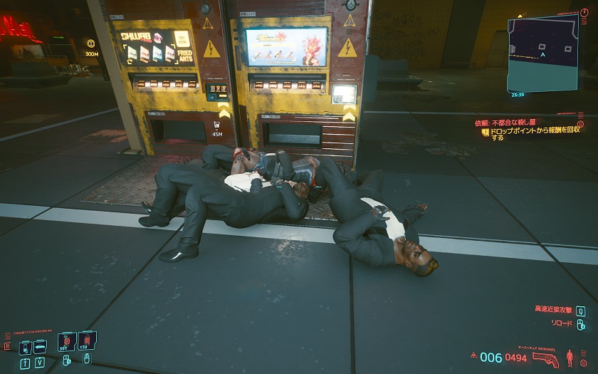 VIPエリアの前にいるゴリラも含め、1階フロアにいる敵は倒しておくと楽。ここの建物は死体を隠す場所がないので、わたしは全部外に運び出しました。