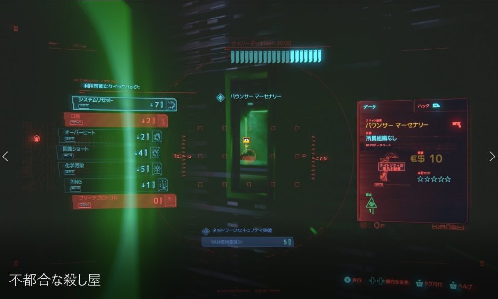 ジャックがいる部屋の前で、扉の窓からクイックハックのシステムリセットを使用。一瞬で二人ともダウンさせられます。自殺は死んでしまうので非推奨。