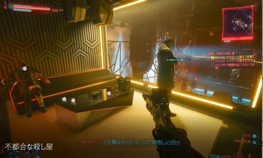 依頼:不都合な殺し屋の攻略解説です。任意目標である「クラブ内で戦闘を起こさない」の達成が非常に大変でした。わたしなりの達成手順を紹介しますので、参考にしてください。