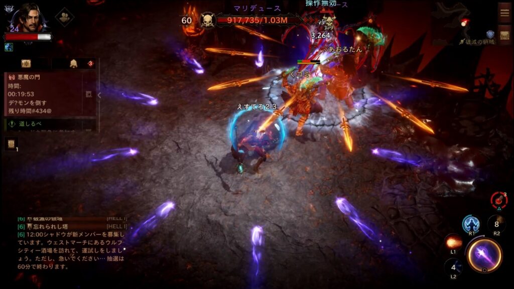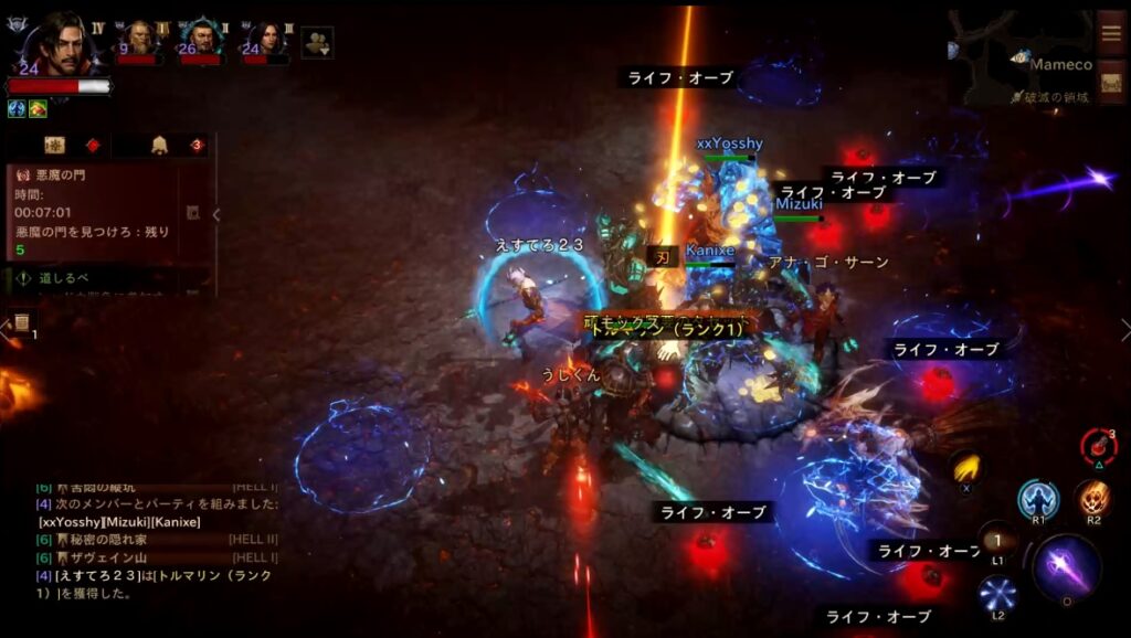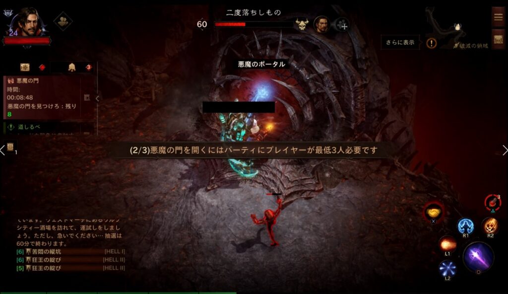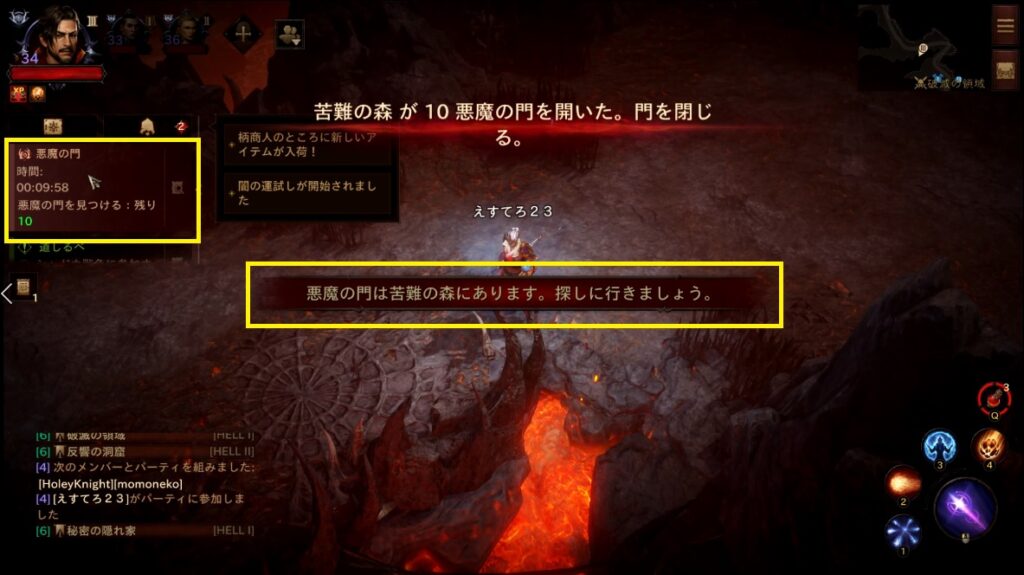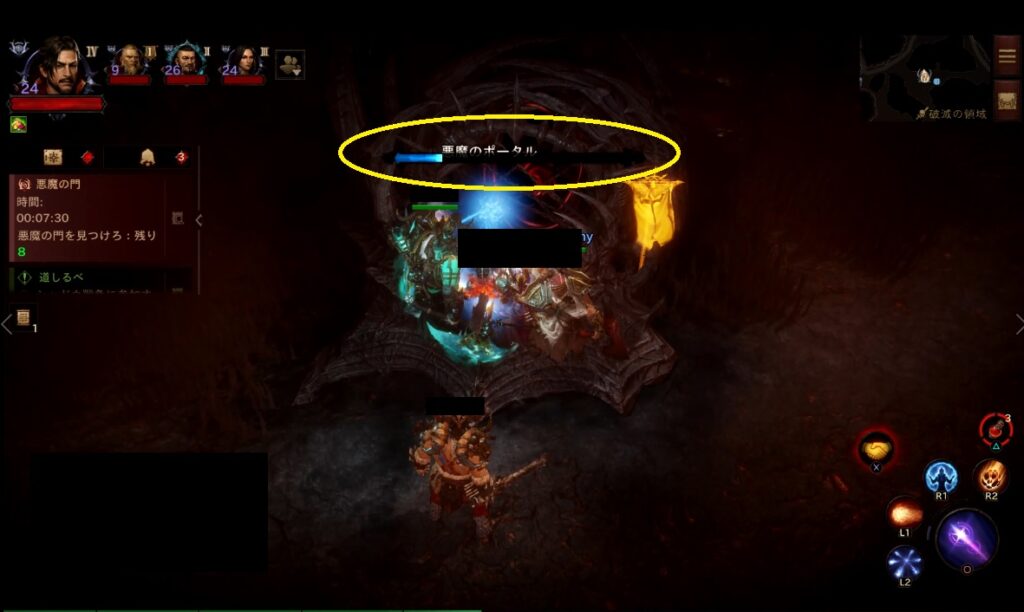 時間になると出現する「悪魔のポータル」を探し同時に3人以上で起動してボスモンスターを出現させます。ミニマップにアイコンも表示され、それを目指して移動すると早いです。