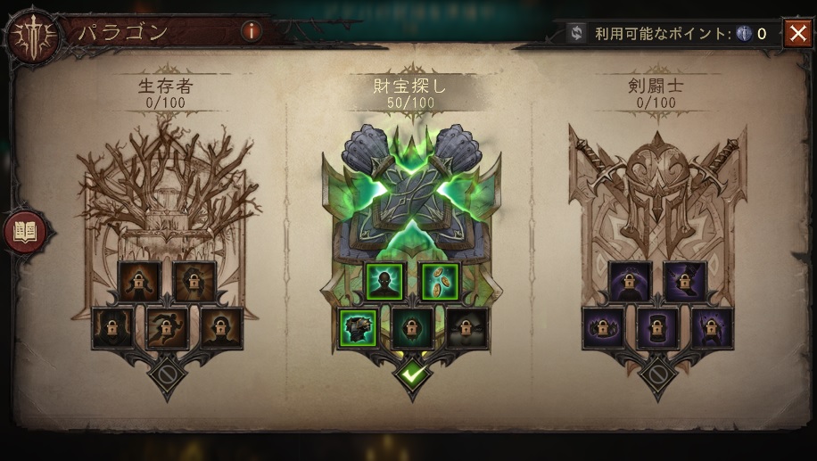 先日ようやくパラゴンレベルが50になりました!これが早いのか遅いのかは分からないけれど、パラゴンレベル50で解放される「財宝探し」と「剣闘士」について簡単にまとめてみました。