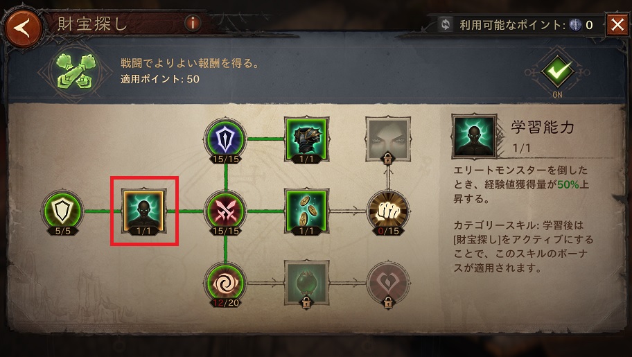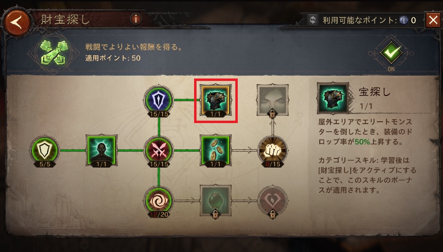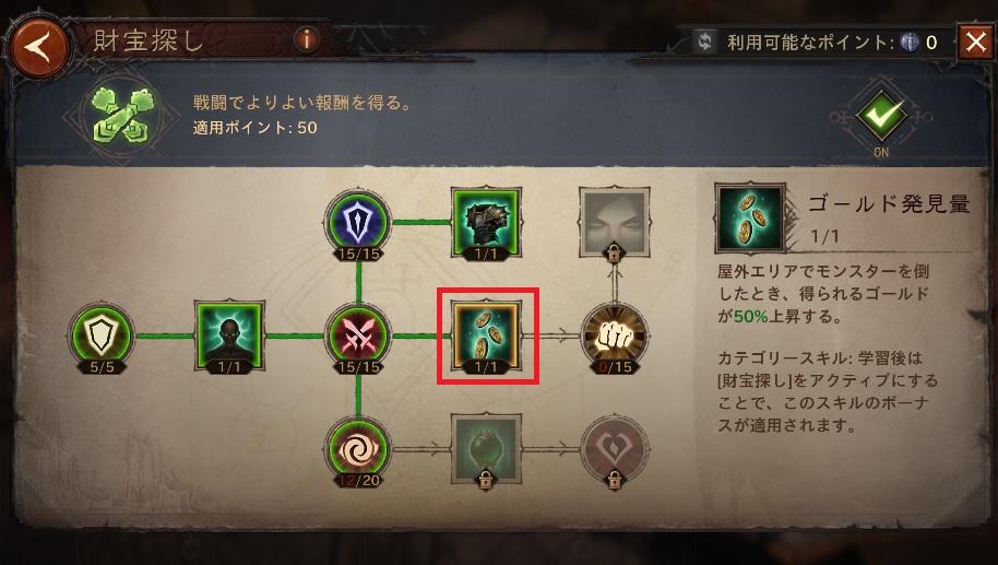 【財宝探し】は狩りに特化したスキルが豊富なので、フィールド狩りが好きな人は振りなおしておきたいです。
