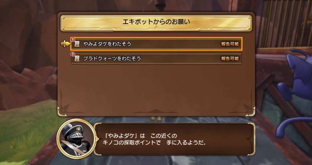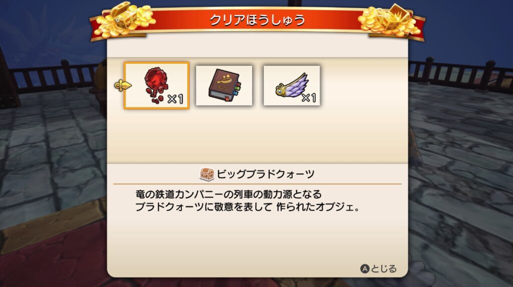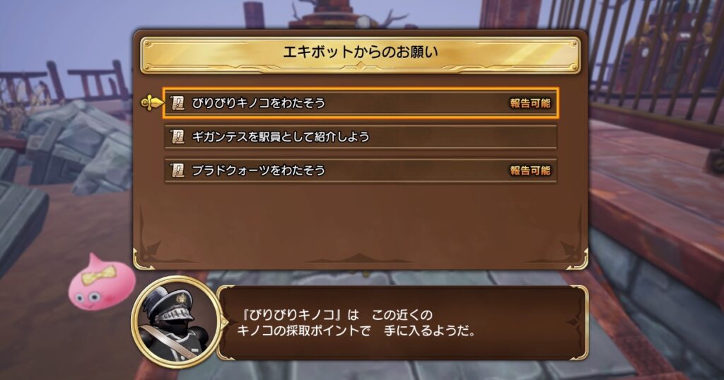 3か所の駅を復旧させ車掌イムレンに報告すれば終了です。報酬はビッグブラドクォーツ・ソーサラーリゾットの上級レシピ・キメラのつばさになります。