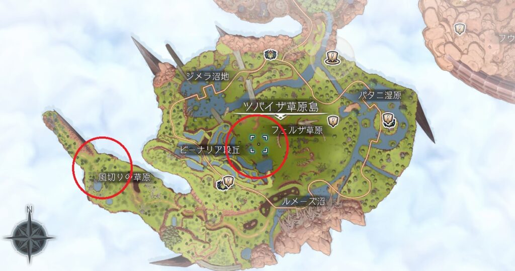 ギガンテスはツバイザ草原のフェルザ草原の西、風切りの草原の奥あたりにそれなりの数がいます。フェルザ草原の方が近くてアクセスはいいですね。