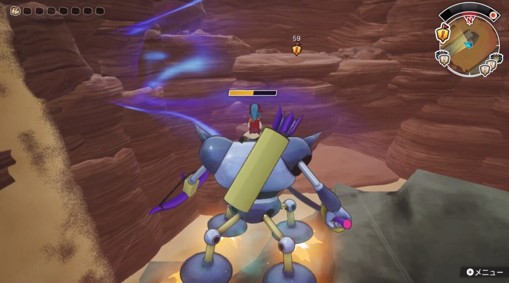 ブリサがいた地点の近くにある道を進むと風ギミックのポイントがあります。それを使えばフルメタルレイダーがいる方面へ飛んでいけます。