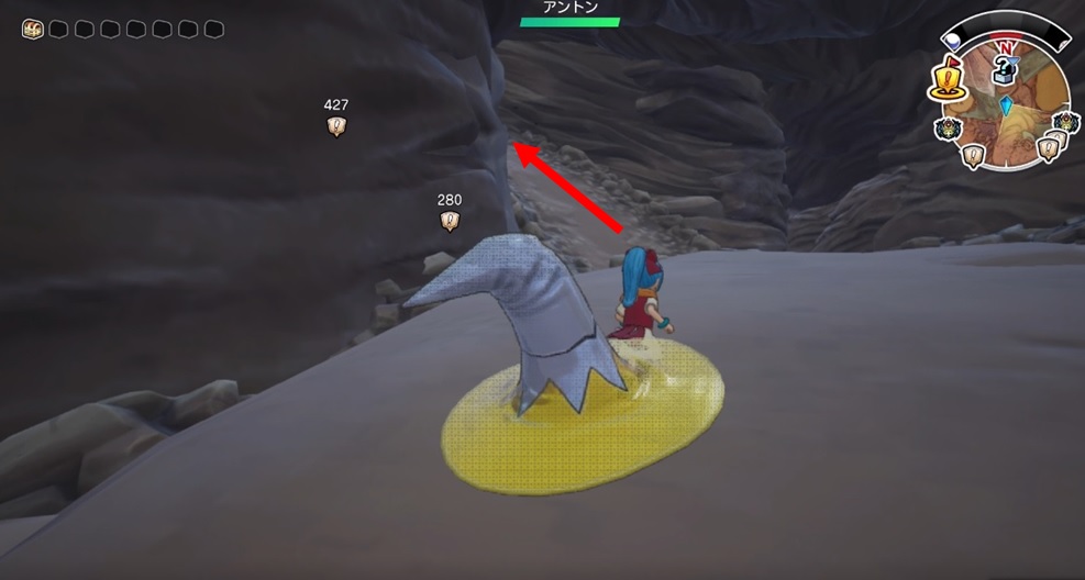 オアシスの駅近くにある高台の風スポットから飛んでいく必要があります。その為、ハイジャンプとかっくうのモンスターを連れて行きましょう。