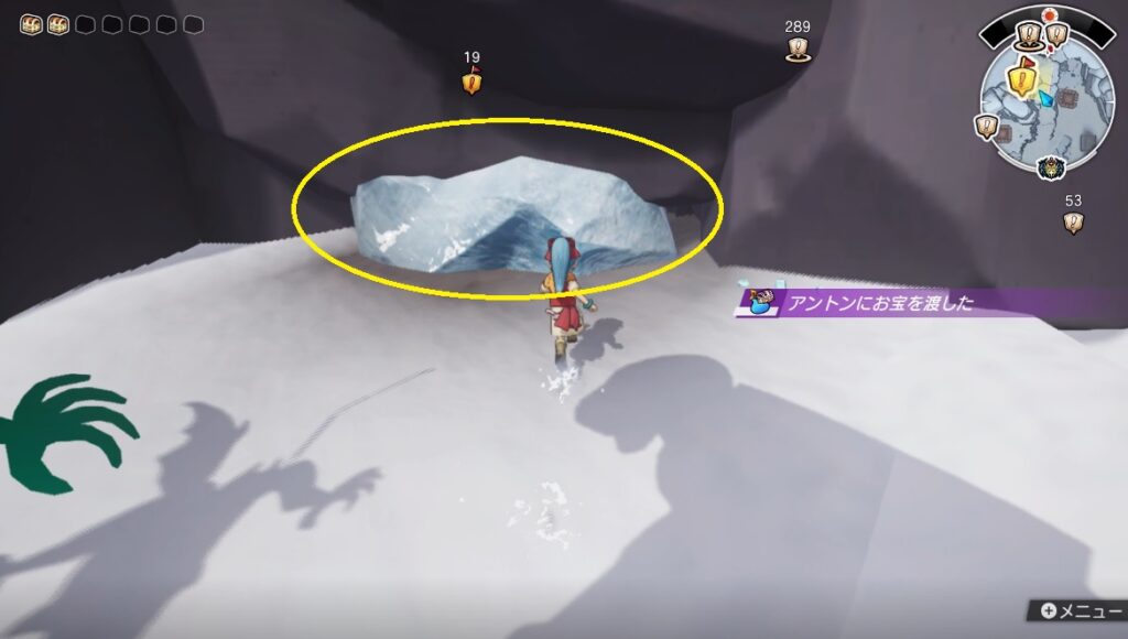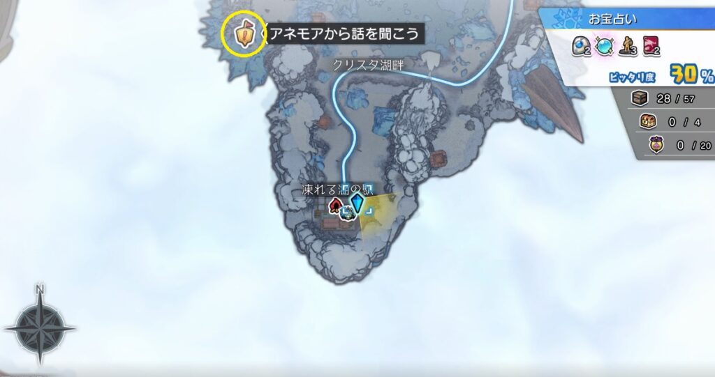 クエストはテーリア氷雪島にいるアネモアと会話するところからです。場所はアイコンで表示されるので、画像を参考にしてください。