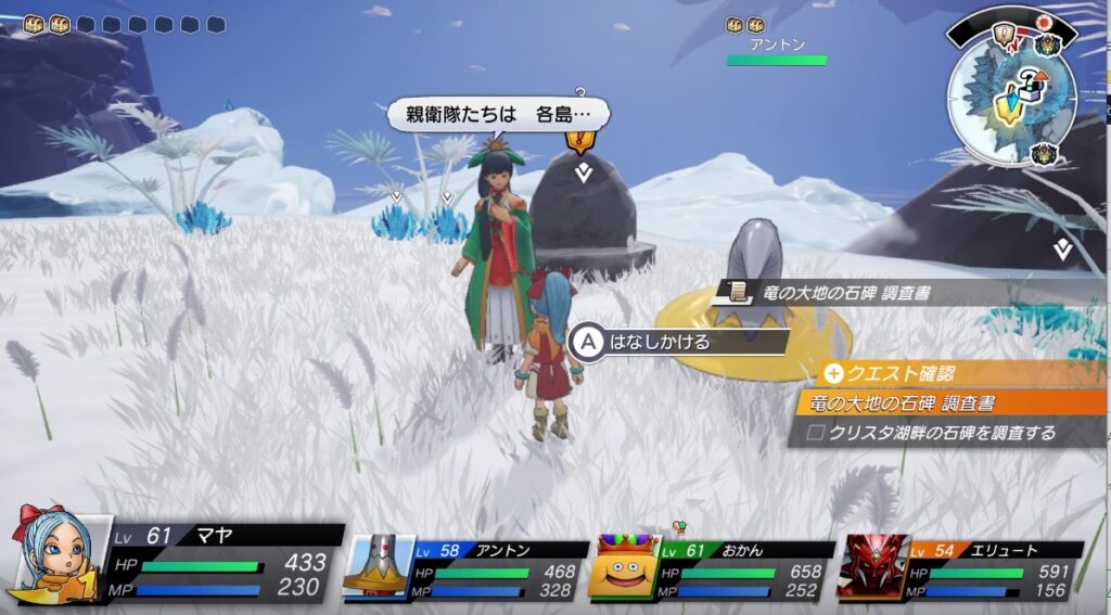 アネモアに話かけるといくつかのクエストが別にスタート。他のエリアに行く前に後ろにある石碑を調べておく。