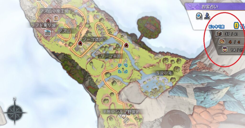 マップの右上を見れば開封した宝箱の数が確認できます。ここからはそれぞれの島にある色付きの宝箱の場所を載せていくので、未取得のある場所を確認してみてください。