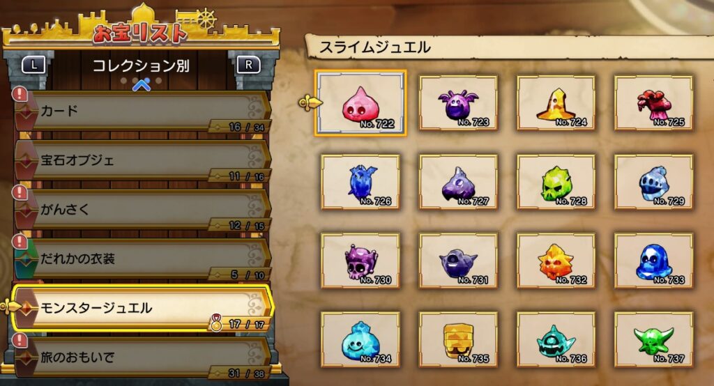 スライムジュエルはメイン進行中、ドラキージュエルは旅人クエスト「ブリサ」で入手