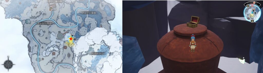 旅人クエスト「アネモア」の途中でも色付きの宝箱を開封しますが、そちらはマップに場所は表示されるので省略しています。