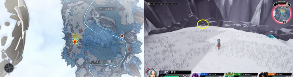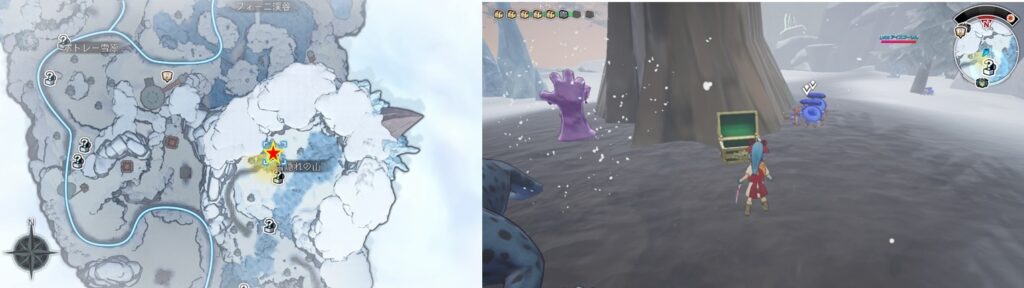 旅人クエスト「アネモア」の途中でも色付きの宝箱を開封しますが、そちらはマップに場所は表示されるので省略しています。