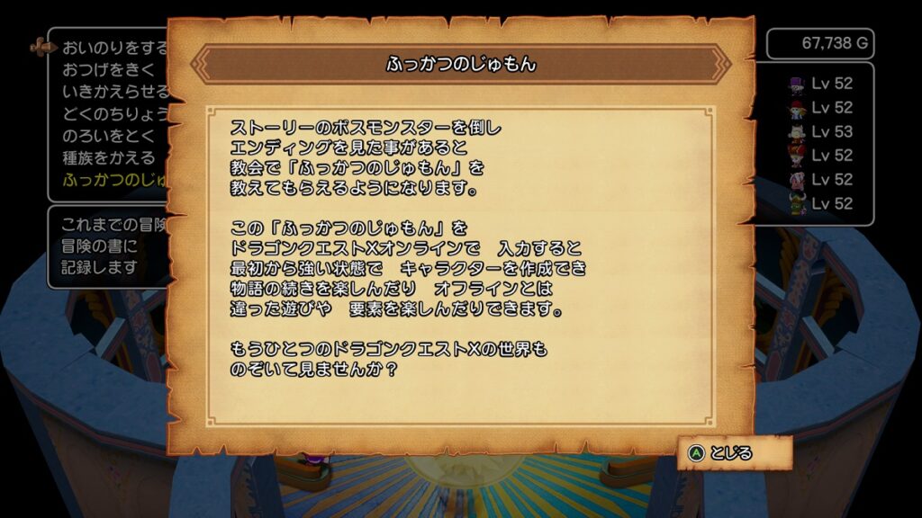 これをオンライン版のドラクエ10で入力するとLV70の状態でスタートできるようです。