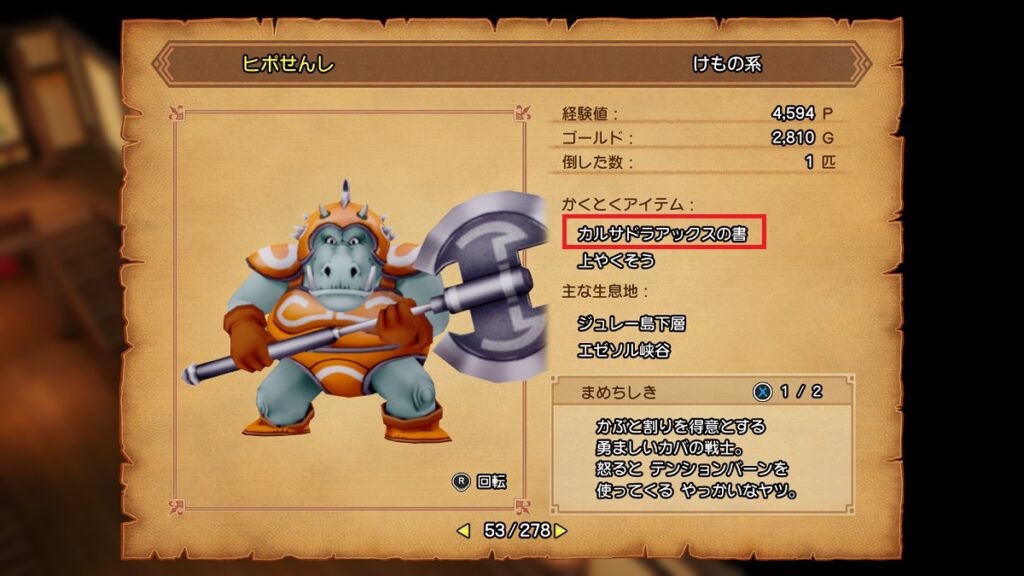 レアドロップでレシピを落とすモンスターが存在します。体感的にオンライン版よりはドロップ率が高めに設定されているような気もするけど、全部集めようとするとかなり大変だと思う。