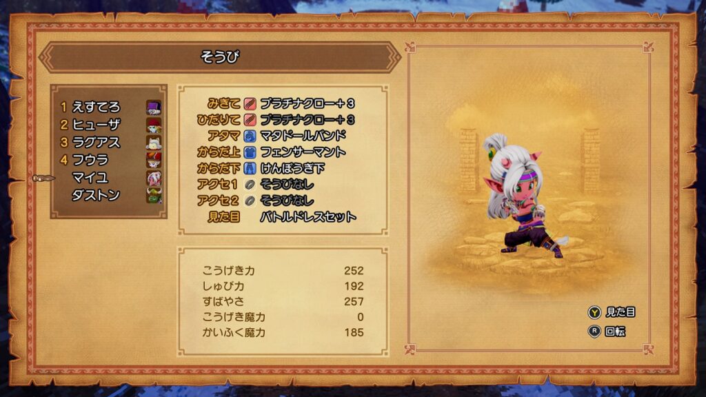 「バトルドレスセット」はマイユ専用の見た目装備です。そうびの画面からいつでも変更が可能です。