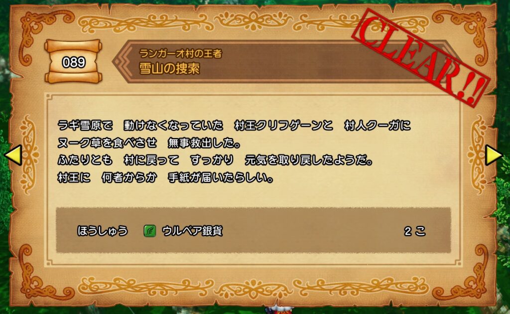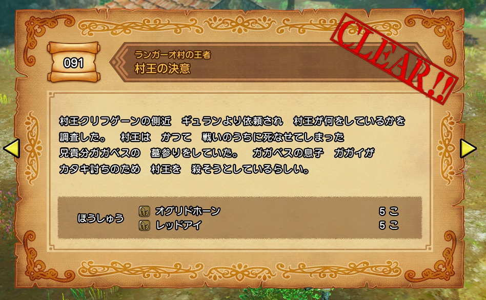 - 村王の家に戻りギュランと会話するとクエストクリア