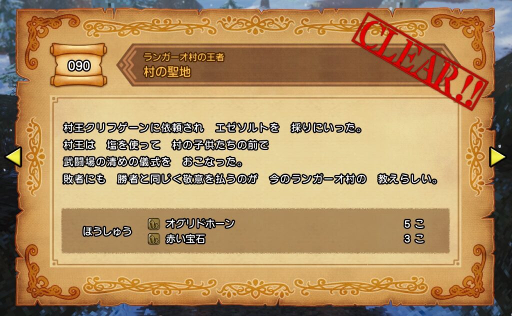 - 村の闘技場へ向かうとイベントになりクエストクリア