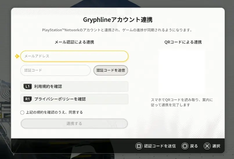 最初にPS5でエンドフィールドを起動した場合には↑のような画面になるかと思います。この時に「PSNのアカウントで簡単ログインする」を選んだ場合の連携手順です。