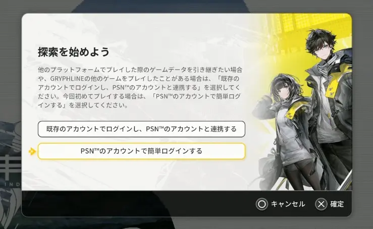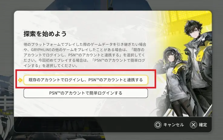 最初のログインの際には「既存のアカウントでログインし、PSNのアカウントと連携する」を選択してください。