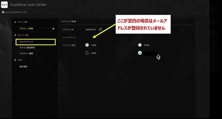 試しにApple IDでログインしてみたんですけどメールアドレスは未連携になってるんですよね…。なので先ほども記載した通りでこの後にPCやPS5でプレイしたい場合には、メールアドレスを登録する必要があるのでちょっと面倒です。