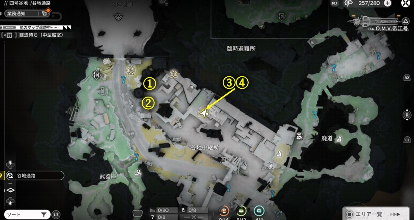 情報収集の「ボーンクラッシャー」で集める必要のある資料4か所の場所の詳細です。1つだけ非常に分かりにくい位置にあるので残り1つが見つからないという方は参考にしてみてください。
