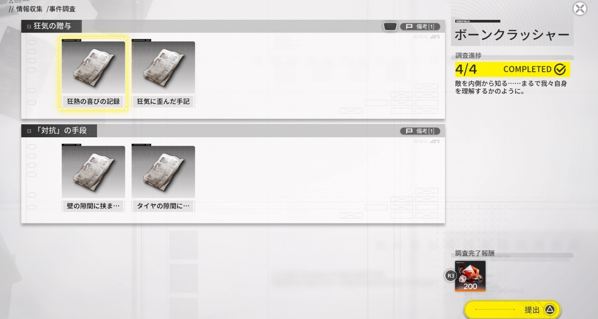 情報収集「ボーンクラッシャー」の調査資料場所4か所【エンドフィールド】