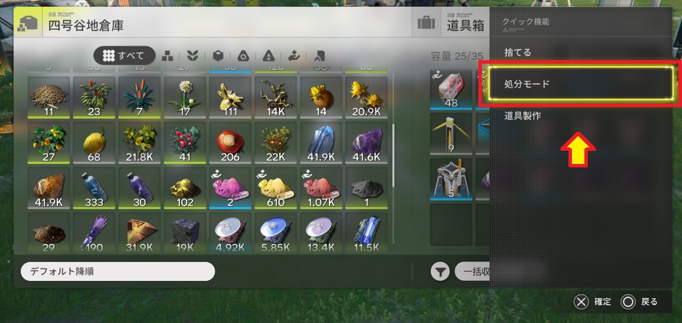 一括収納(PS5版だとL3押し込み)でやると倉庫への余剰分は勝手に処分してくれるようです。