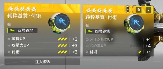 なお、「紫」や「青」は比較的入手しやすいものの基質自体の強化が出来ず、金は理性消費が必要なものの強化をすることで更にステータスを高められるという特徴を持っています。