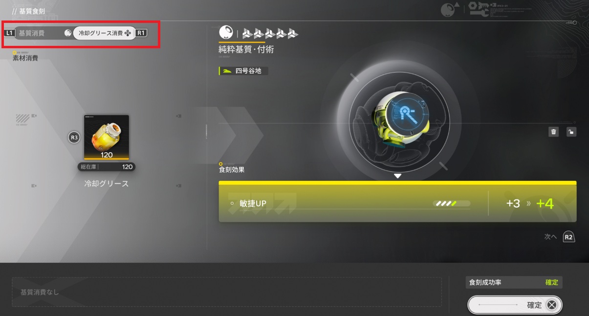 冷却グリースを使うと強化成功確定のようなので、将来的には[強化を失敗しまくる→冷却グリースを貯める→集めた冷却グリースで確定成功させる]の流れになりそう。