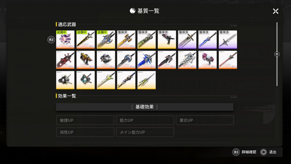 「どの基質を付けたらいいか分からない…」って人はまずは装備している武器に付いている活性化効果一覧と見ます。