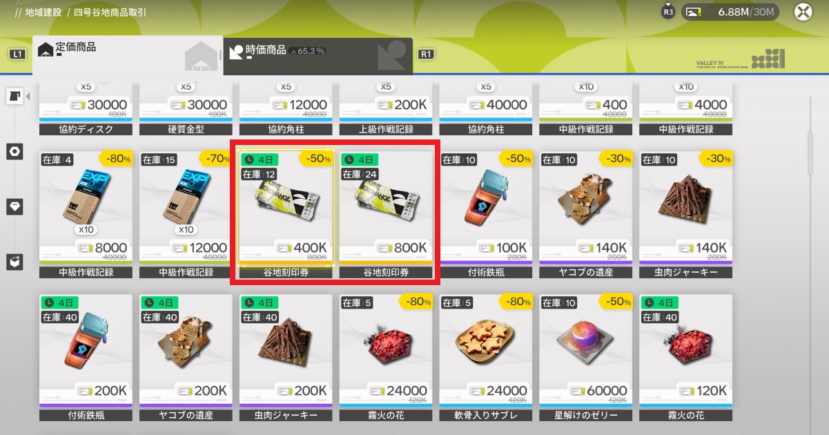 刻印券は商品取引で購入ができます。ただ、そこそこのお値段がするので工業をしっかり行って取引券を稼いでおきましょう。