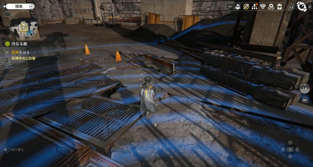 ゲオルギーについて行った場所でスキャンをすると黄色の足跡が出現します。この後はこの足跡を追跡していきます。