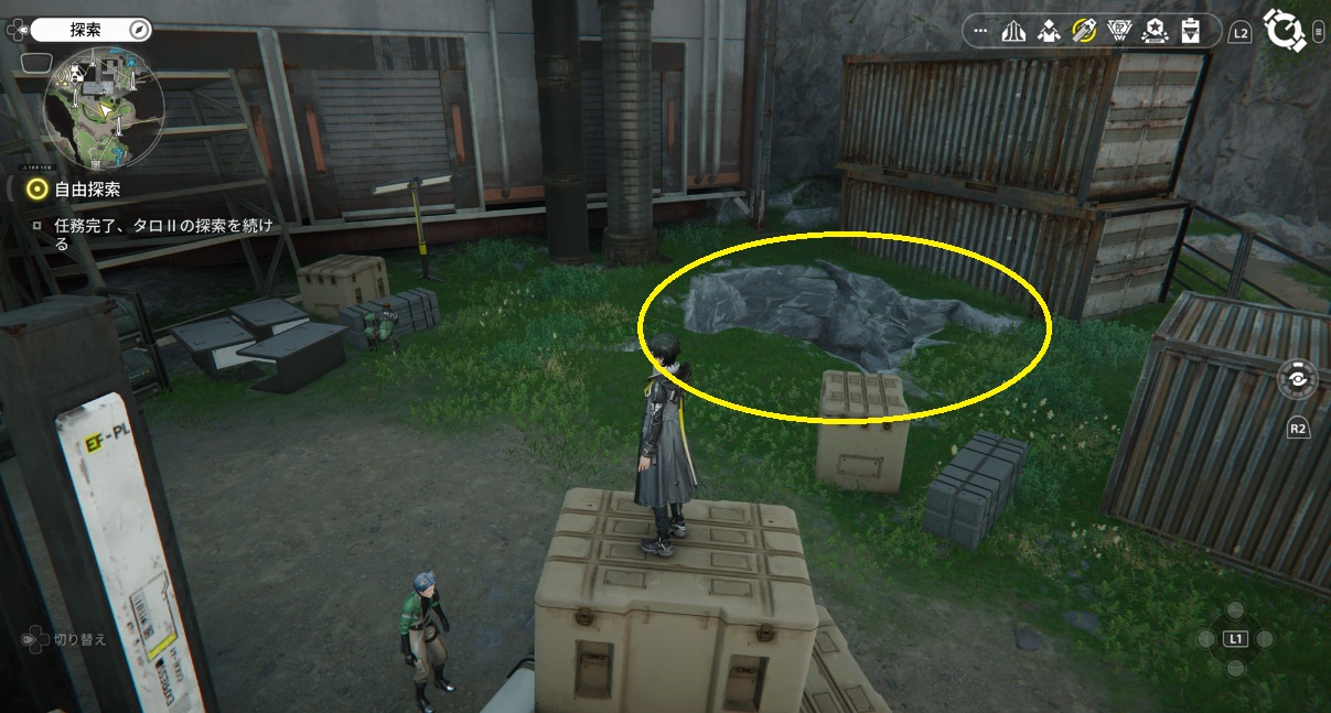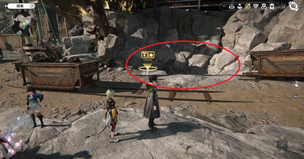 1か所目は鉱区診療所の南。確か布がかかっていたと思うので該当の場所へいくと地面が崩れて下に行く事ができます。