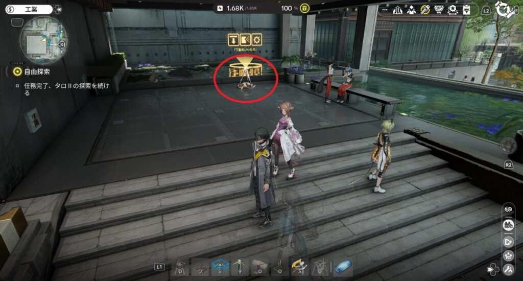 そんな動かなくなっている貯水オリジムシにドローンを使って一定量の水を与え続けると、お礼として少しばかりの報酬をドロップしてくれます。量は多くないですが育成素材はいくらあっても困りませんからね。