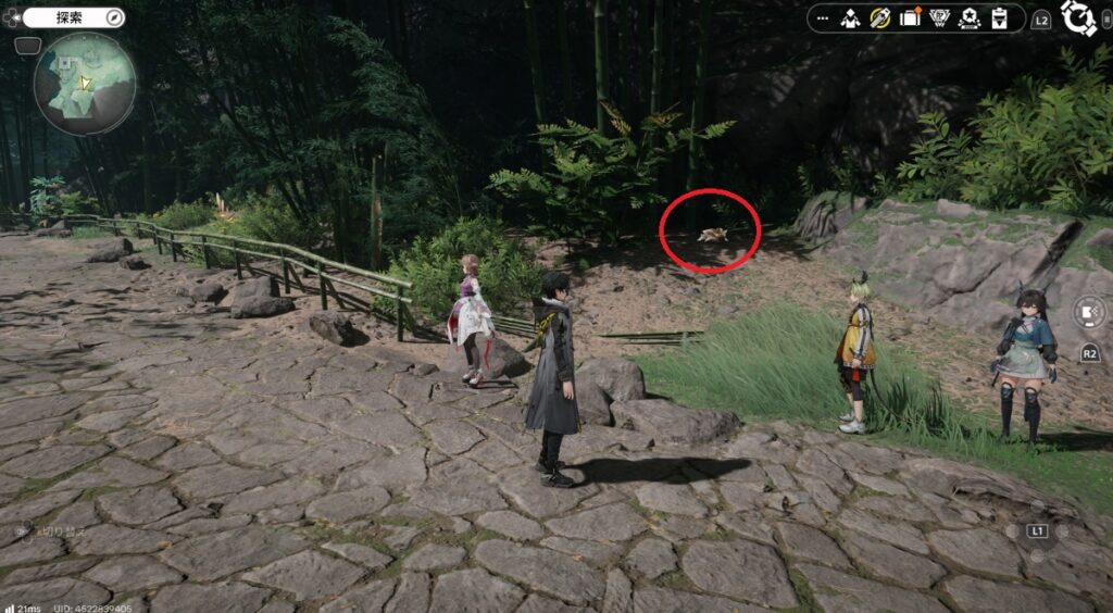 階段脇の草むらの中に3匹