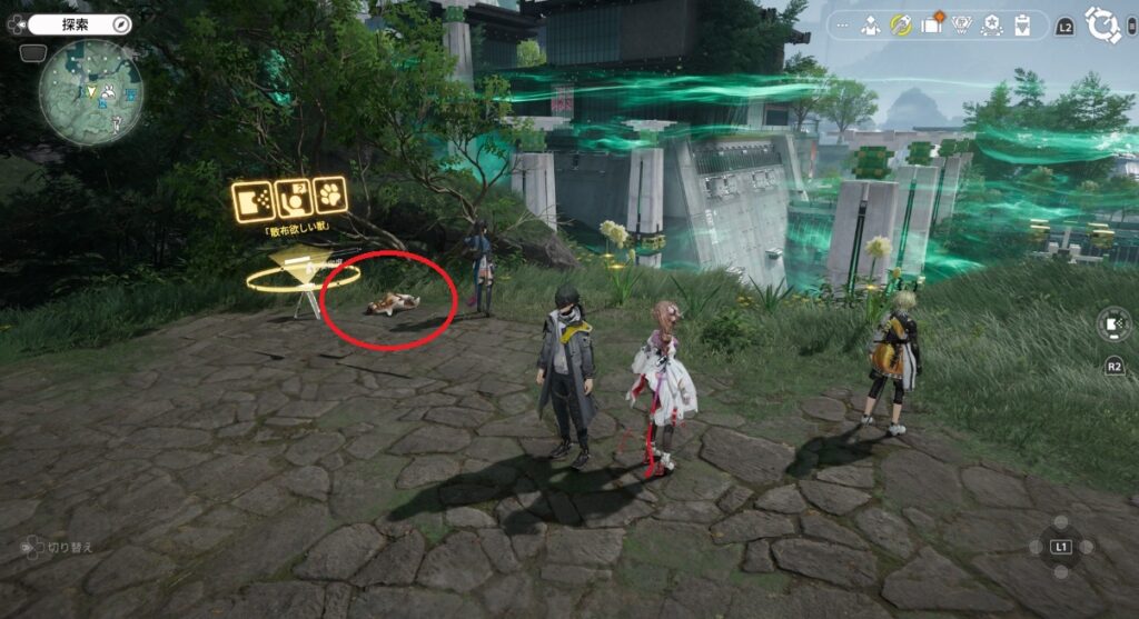 いろいろと調べてみましたが現状確認されているのが11か所で合計15匹のようです。下に周辺の画像を載せておきますので↑の全体画像と照らし合わせながら探してみてください。