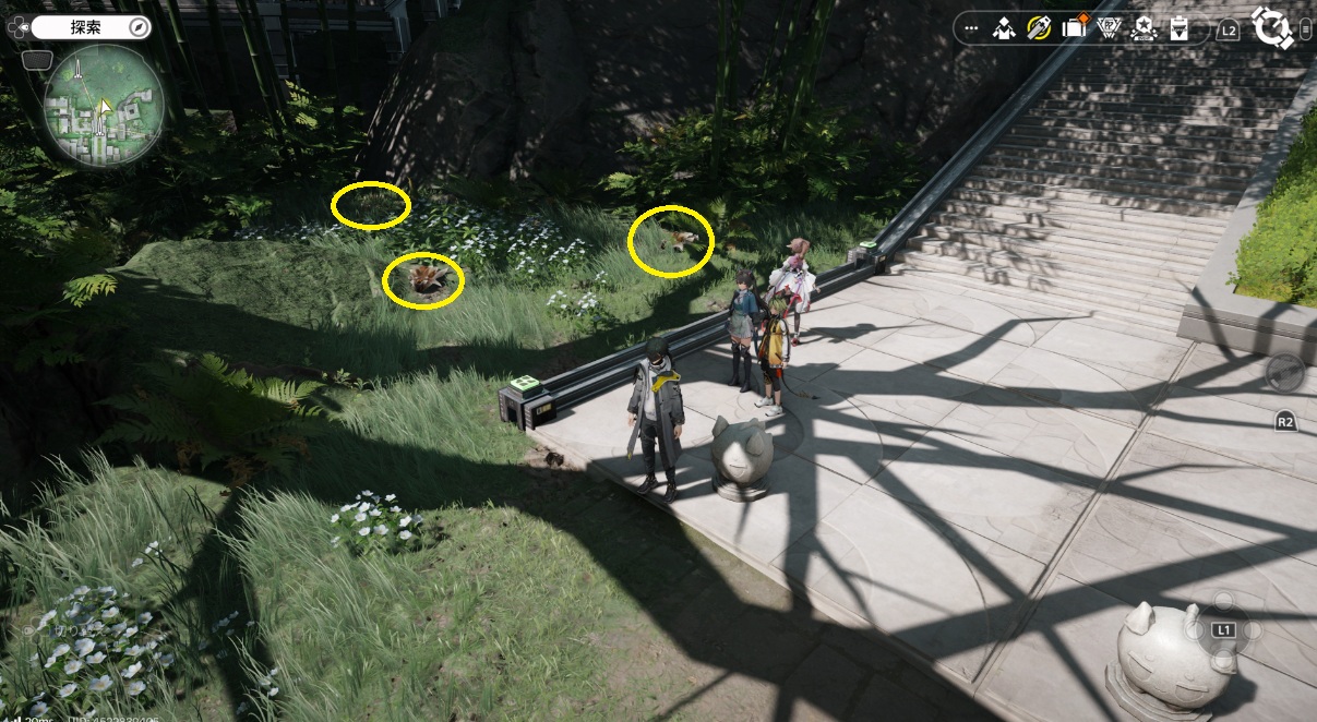 階段脇の草むらの中に3匹