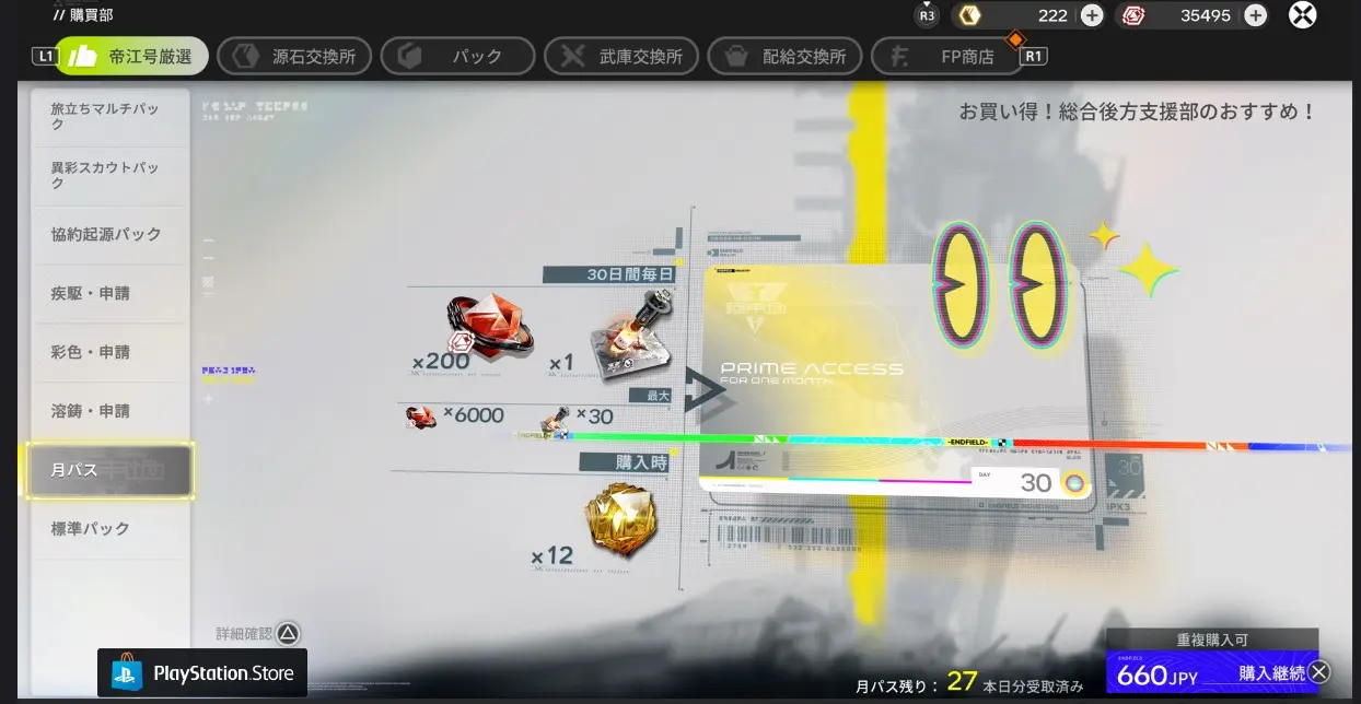 月パスってのは購買部から購入できる30日間で1セットとなった課金パックのこと。