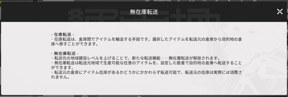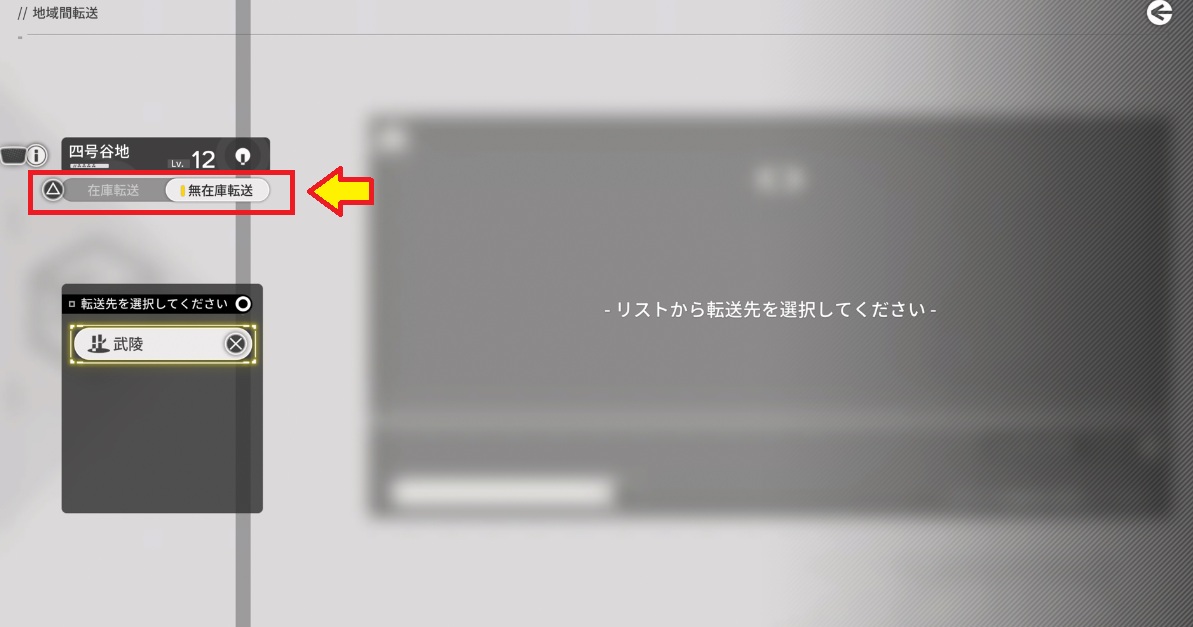 ■無在庫転送(四号谷地の地域建設レベル12で解放)