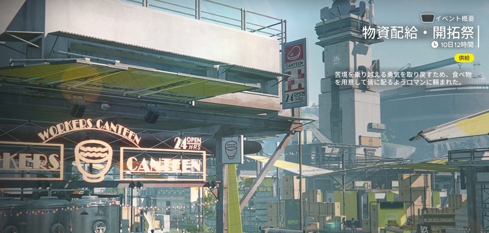 数日前から始まったイベント「物資配給・開拓祭」。決まった料理をロマンのところに持っていくというシンプルなものですが、料理自体がゲーム内の店で買えると話題になっています。