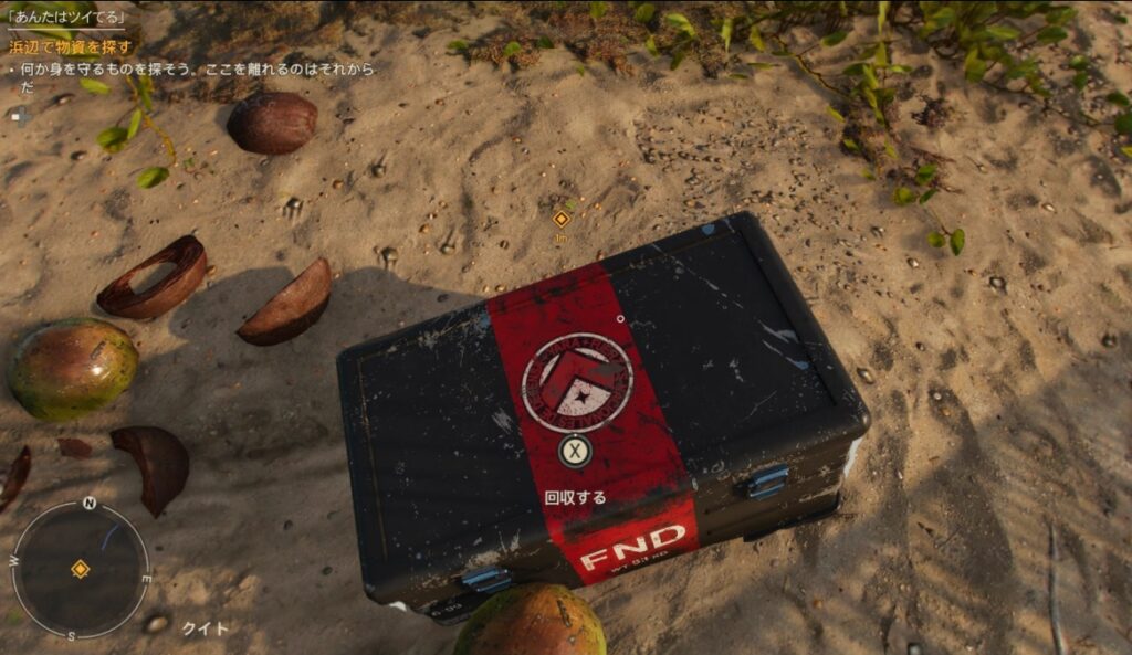 結構近寄って下を向かないとボタンが反応しない感じでした。中に「PMM(ハンドガン)」が入っていますが、弾がないので装備してもまだ使えません。