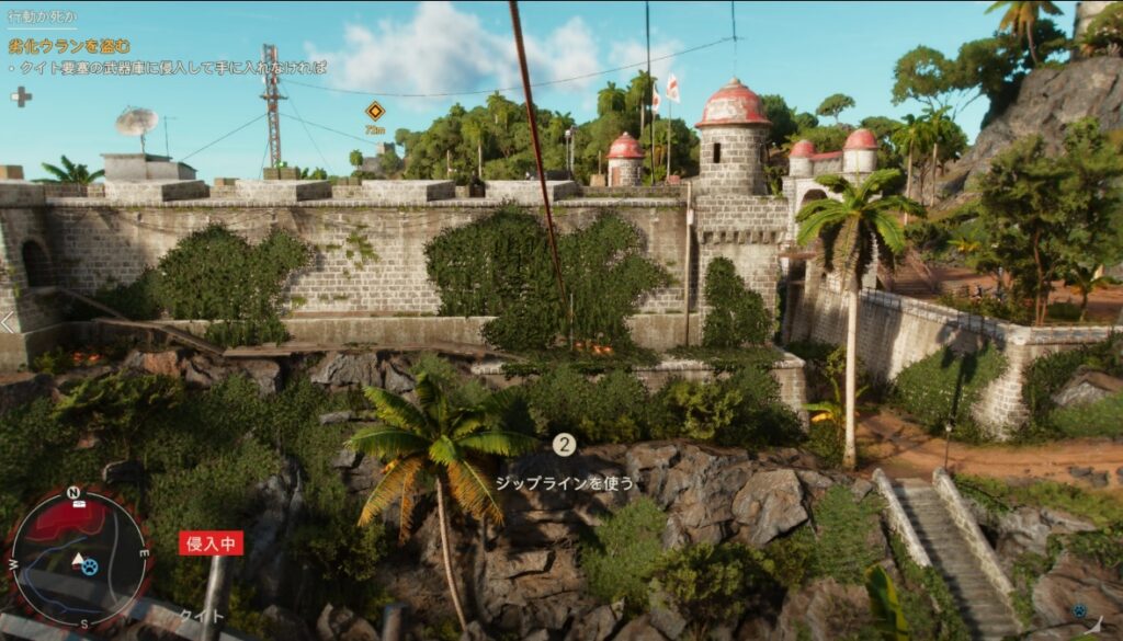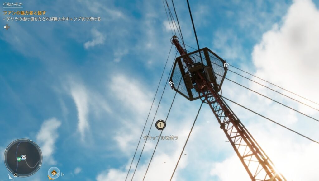検問所を占領して電波塔につくとフアンから連絡が入ります。「ゲリラの抜け道を見つけて連絡役のところへ向かえ」と言われるので、その通りに行動していけばOK。