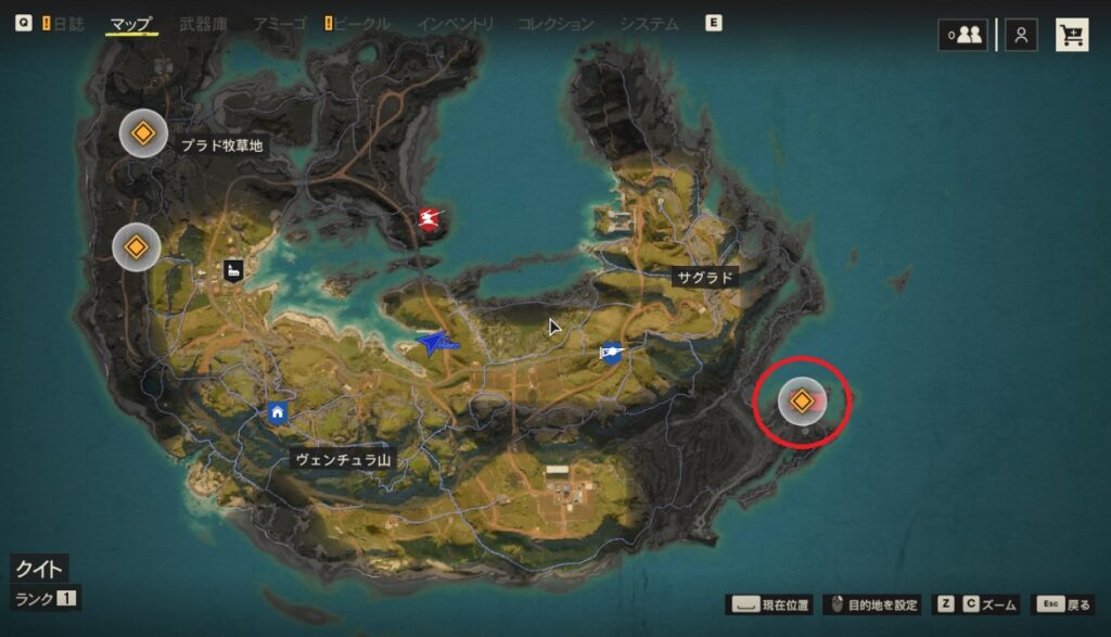 ヴィヴィロ・ヌエヴェ農園でガベザ燃料施設のメモを拾っている場合は、マップの南東方面にアイコンが表示されていると思います。