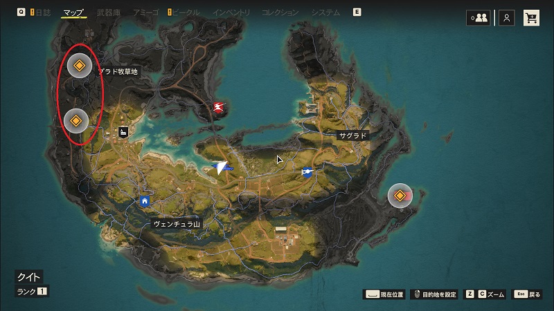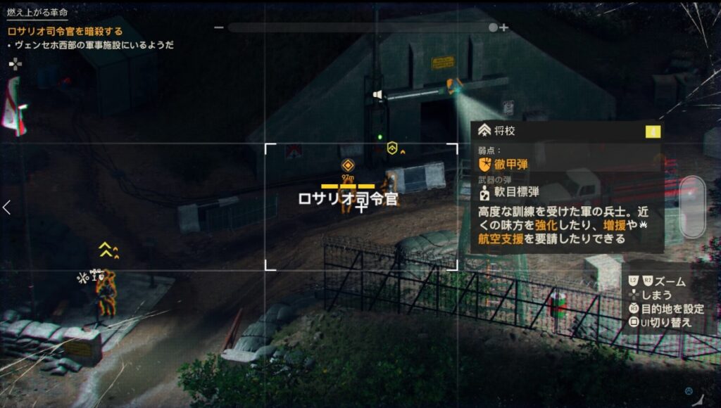目的地のアイコンが2か所ありますが、マップだと下側にはロサリオ司令官はいませんでした。ただ敵を倒すだけになってしまうので、ストーリー進行上は無視してもいいのかもしれません。