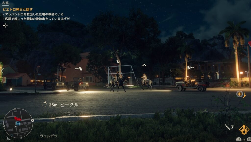 マップの目的をみて道なりに進む。教会の近くへいくとミッション内容が変化します。